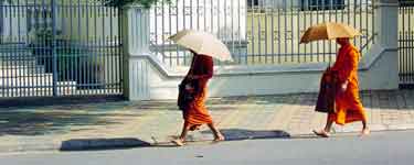 ![]() 11.11.02 Zwei Grad und Nieselregen ... bei unserer Ankunft in Hamburg. Es kann eben nicht immer alles 100 Prozent sein. Wir sind wieder da. Rainer steht schon wieder in seinem Studio und auch ich mache mich gleich auf den Weg zur Arbeit. Alles beim Alten oder doch alles neu? Einen frohen Montagmorgen! posted by darja lena | 14:188.11.02 Besuch bei der Koenigin Bangkok, kurz nach 23 Uhr: Der Verkehr steht still, Polizisten sperren die Strassen ab. Eine Drogenrazzia? Der kleine Park, durch den wir eben gegangen sind, erschien uns doch sehr verdaechtig ... Wir gehen ueber eine Strasse und werden von einem freundlichen Polizisten angehalten. "The Queen" fluestert er uns zu. Aha, die hohe Dame kommt auf ihrem Weg nach Hause an uns vorbei gerauscht. Wir stehen andaechtig am Strassenrand, denn in Thailand sind Koenig und Koenigin heilig. Nun aber husch ins Bett, denken wir, denn morgen bekommt sie ja Besuch. Von uns. Am naechsten Morgen plagt uns ein Loch im Bauch. Wo bekommen wir ein Brot her, um uns fuer unseren Sightseeing-Tag fit zu machen? Nach ein wenig Sucherei spazieren wir wie selbstverstaendlich in ein Gebaeude, das nach einer Behoerde aussieht und in etwa so bewacht wird. Wie zwei normale Sachbearbeiter setzen wir uns in einen kantinenartigen Raum. Unser erster Besuch beim Oeffentlichen Dienst. Niemand beachtet uns, aber wir bekommen fuer umgerechnet etwas mehr als einen Dollar ein oppulentes Fruehstueck und stellen uns dabei vor, was wohl passieren wuerde, wenn wir einfach mal in eines der Bueros gingen und irgendeine Arbeit verrichteten... Glitzernde Pracht und Brillanten Der Koenigspalast ist das praechtigste, was wir in unserem Leben je gesehen haben. Alles blinkt und funkelt. Im krassen Gegensatz dazu stehen einige unserer Mitbesucher, die anscheinend nicht wissen, dass man das Auge der Koenigin (und unsere auch) nicht mit Shorts und Feinripp-Unterhemden beleidigen sollte. Na ja, sie ist ohnehin gerade nicht zugegen. So vertreiben wir uns ohne sie die Zeit in ihrem praechtigen Palast. Den Wert auch nur eines Daches oder einer Tuer zu schaetzen, wollen wir uns nicht anmassen. Es scheint schlicht unmoeglich. Tja,eben noch durch ein kambodschanisches Dorf geradelt und nun in Prunk und Pracht. Das Leben haelt vieles bereit. Tschüß, Bangkok - auf Wiedersehen in Asien Nachdem wir also Bangkok so ausführlich, wie man es innerhalb von 27 Stunden tun kann, erkundet haben, gönnen wir uns noch eine Thai-Massage. Im Zimmer im ersten Stock des Massage-Salons liegen neben einander vier Matten auf dem Boden, eingeschlagen in grüne Tücher wie man sie sonst nur im OP-Saal von Krankenhäusern sieht. Unsere Masseure (eine Frau für Darja, ein Mann für mich) weisen uns an, auf zwei Matratzen die horizontale Haltung einzunehmen. Wir sollen unsere Kleidung anbehalten, nur Darja muss ihren Rock durch eine dünne Hose ersetzen. Dann beginnt die SM-Session. Die Masseure kneten und walken uns durch, als hätten wir eine kräftige Tracht Prügel (Darja, für Dich eine "Wucht" *grins*) bei der Domina gebucht. Diverse Male bin ich mir nicht sicher, ob ich vor Schmerz oder Erleichterung lachen soll. Nachdem die beiden uns eine Stunde lang traktiert haben, fühlen wir uns wider Erwarten sehr entspannt. Wir haben noch 89 Baht (ca. € 1,10), die wir für diverse (!) kleine Mahlzeiten auf den Kopf hauen. Die letzten 9 Baht wirft Darja einem Bettler in die Konservenbüchse. Gegen 19.30 Uhr sind wir pleite, wir haben nur noch genau die Summe auf Tasche, die wir für das Taxi zum Flughafen und die Ausreise-Gebühr zurückgelegt haben. Also trotten wir zurück ins Hotel, nehmen noch eine Dusche und machen uns gegen 21 Uhr auf zum Flughafen. Für drei Dollar (ja, wir hatten noch eine eiserne Reserve dabei) nehmen wir noch zwei Kaffee im Flughafenrestaurant... warum sind Getränke in Terminals eigentlich immer so unverhältnismässig teuer und unlecker?! 23 Uhr: das Bording beginnt und der Urlaub trudelt langsam aus... rund 12 Stunden später (gegen 6 Uhr Ortszeit) sitzen wir am Gate des Pariser Flughafens Charles de Gaulle... 7.35 Uhr: unser Flugzeug nach Hamburg hebt ab... kurz nach 9: Fuhlsbüttel.... komisch, wir sind wieder Zuhause! 7.11.02 Verkehrsmitteltest 2 - Nachtrag 1. Nach zwei Tagen auf Stahlsaetteln und holperigen Strassen sind wir froh, gleich aufs Flugzeug umsatteln zu koennen. 2. Khmer-Kilometer scheinen kuerzer zu sein als normale. posted by darja lena | 12:42Wat-Wanderung als Rad-Wanderung Gleich mal vorweg: Dass wir gestern 25 km bei sengender Hitze gefahren sind, muss wohl an dem Phaenomen der Khmer-Kilometer liegen (s. letzter Eintrag). Mir kam es vor wie zehn. Mein Hinterteil wuerde da allerdings widersprechen. Um vier Uhr klingelte der Wecker zum ersten Mal. Nach einigen Anlaufschwierigkeiten erreichten wir puenktlich zum Sonnenaufgang Angkor Wat. Angkor ist die groesste Tempelanlage der Welt und die offensichtlich beeindruckendste dazu. Sie ist Teil des UNESCO Weltkulturerbes. Angkor Wat ist sozusagen das Filetstueck der gesamten Anlage aus der Hochzeit der Khmer-Kultur. Aber es gibt auch noch einiges mehr zu sehen. Viele der bereits herumwimmelnden Touristen waren sehr betriebsam und auf der Jagd nach dem goldenen Foto. Kaum war die Sonne aufgegngen, hatten wir zwei Fruehaufsteher das Wat quasi fuer uns alleine und konnten uns nach einem Fruehstueck (Brot mit Omelette ist hier eine beliebte Kombination) ausgiebigst der Location widmen. Ganz in Ruhe und mit vielen Trinkpausen (wegen der Verdunstung) genossen wir die Athmosphaere und "arbeiteten" so ganz nebenbei die wichtigsten Attraktionen ab. Den Bayon zum Beispiel, einen Tempel, den 54 angeblich geheimnisvoll laechelnde Gesichter verzieren. Uebrigens ein wunderbarer Ort, um im Schatten ein Schlaefchen zu halten. Am meisten beeindruckt hat uns Ta Prohm, ein Tempel, der auch nach seiner Entdeckung weiterhin der Natur ueberlassen geblieben worden ist. Riesige Baeume haben vom Mauerwerk Besitz ergriffen und zermalmen nach und nach